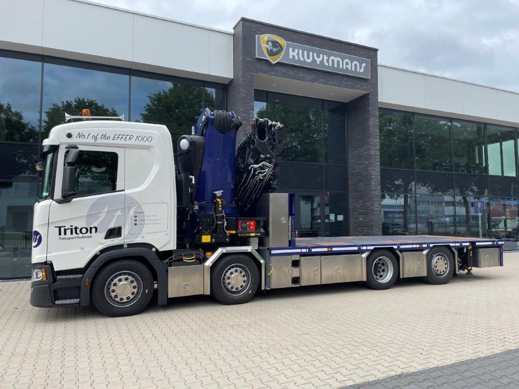 Triton Transport Techniek uit Diessen heeft een Scania R450 in gebruik genomen met de eerste Effer 1000 autolaadkraan. Het Scania chassis werd door Veldhuizen Wagenbouw aangepast voor deze toepassing.