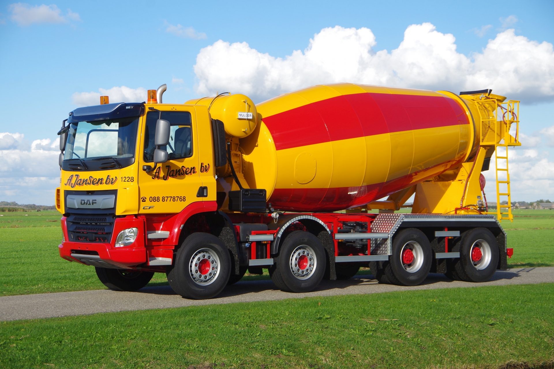 De auto’s zijn verder uitgevoerd met een 12 m3 mixer van Fa. Mulder en hebben een laadvermogen van 27 ton.