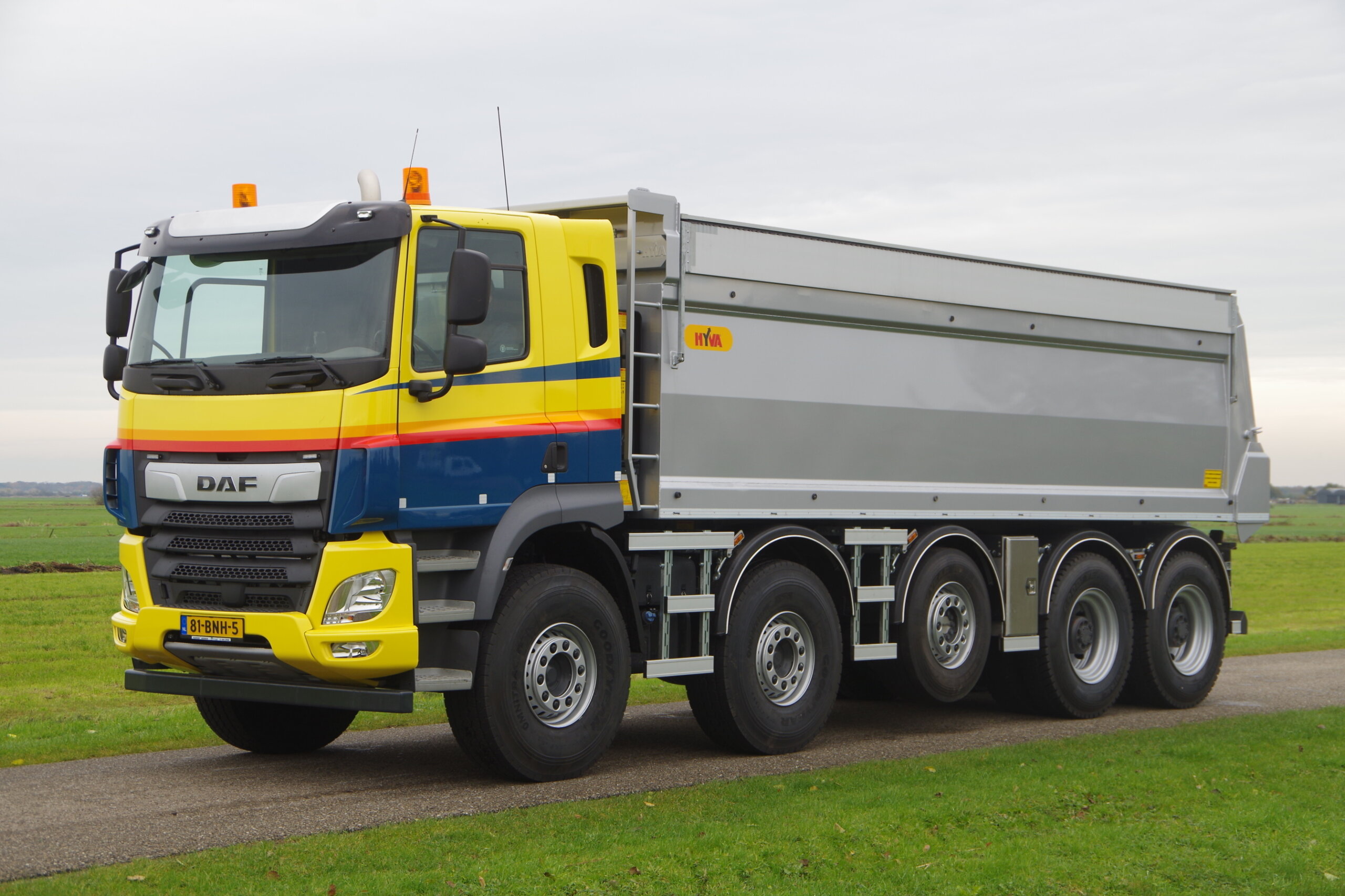 Een DAF die door Veldhuizen werd aangepast is een CF FAW die voorzien is van een voorloopas. Deze 10×4 is voorzien van een Palfinger autolaadkraan en een VDL haakarm systeem waardoor dit een bijzonder veelzijdig voertuig is met 26 Ton laadvermogen.
