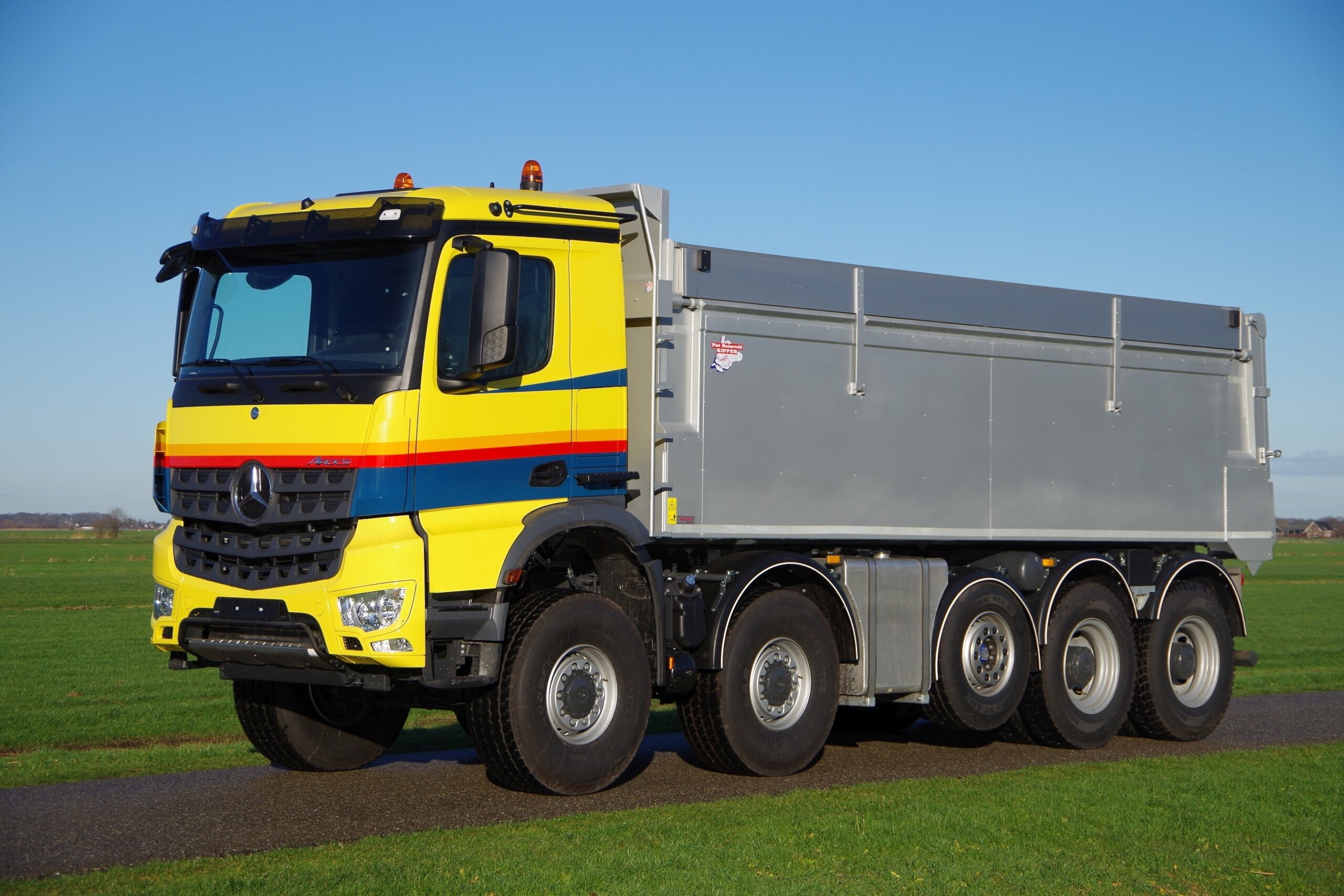 Voor het echte zware offroad werk heeft Maessen de beschikking over vier Mercedes-Benz Arocs 10×8 kippers. Ook deze trucks zijn door Veldhuizen Wagenbouw voorzien van 445/75 R 22,5” voorbanden en een liftbare middelste as. Maessen heeft verschillende merken aangedreven kippers gehad, maar kiest vanwege de onderhoudskosten voor Mercedes. De nieuwste Arocs trucks zijn voorzien van 11,5 tons voorassen en een middelste as die gekeurd is voor acht ton. Het totale GVW bedraagt 50 ton en het nuttig laadvermogen van deze 10×8 trucks is 30 ton. De trucks zijn voorzien van een kipperopbouw van Ruizenveld uit ‘s-Gravendeel. Dit concept bevalt Maessen zodanig dat een vijfde, identieke 10×8 Arocs inmiddels besteld is.