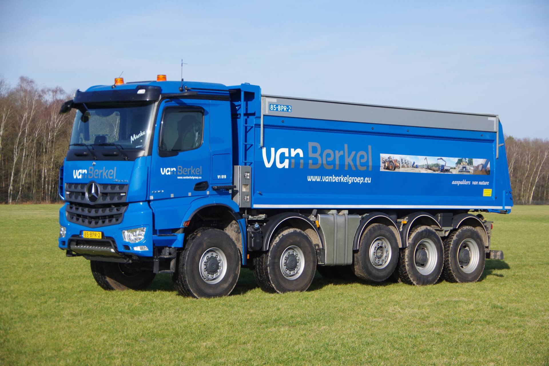 Van Berkel is een Brabants familiebedrijf dat zich bezig houdt met recycling, grondstoffenhandel, biomassa en zelfs aannemingswerken in de agrarische- en publieke sector. Daarnaast is het bedrijf actief in het grondverzet en zelfs in de containerlogistiek met een eigen containeroverslag in Veghel. Voor het transport van grond, grind, sloopafval en andere losgestorte producten zet het bedrijf sinds kort drie Mercedes-Benz Arocs 10×8 kippers in.