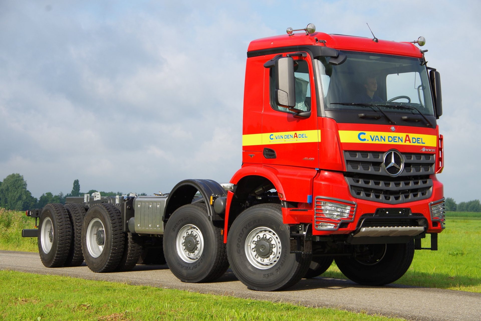 Voor de wendbaarheid op de bouwlocaties en het hoge laadvermogen wilde Van Den Adel weer een auto met Wide Spread Gestuurde assen.